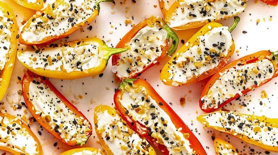 Fill the pepper halves with cream cheese. Sprinkle with seasoning to taste